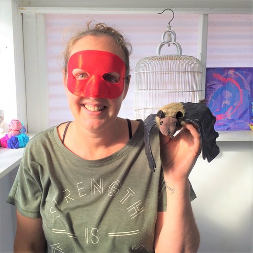 Bat, or Battie as she is affectionately known, plays a special role in our kids art classes. She is always there to pat or cuddle when those BIG emotions take over. Lots of kids who are a bit nervous at the start of the class, have loved to pat a bat. She also remind us to BAT when the big emotions take over. To calm down we need to Breathe, Admit and Think.