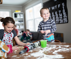 Level up the excitement by incorporating child-friendly obstacle courses! You can use pillows, cushions, and blankets to create tunnels, makeshift stepping stones, and barriers they can jump over. This could help improve their motor skills and coordination. We have a free download for a Household Scavenger Hunt as part of our free resources.